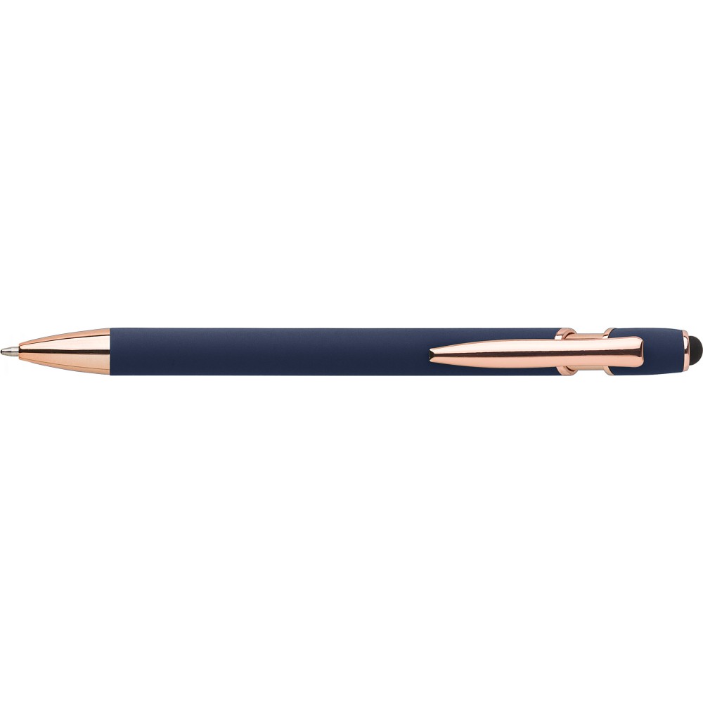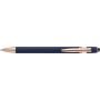 Alumínium golyóstoll rózsaarany részletekkel és érintővel, kék tollbetéttel. Emblémázás: Gravírozás, UV nyomtatás