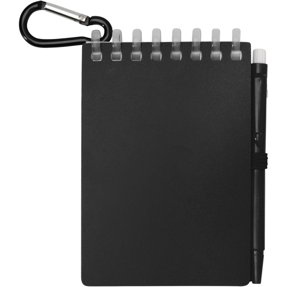 A Lig Mini jegyzetfüzet és toll szett kompakt és praktikus társ a gyors jegyzeteléshez útközben. A spirálfüzet puha, újrahasznosított műanyag borítással és 70 darab, 120 g/m2 súlyú, vízálló kőpapírból készült üres lappal rendelkezik, így ideális választás szabadtéri használatra is. A kerekített sarkokkal és beépített tolltartó pánttal ellátott kiegészítő tökéletesen követi a "mini" trendet, miközben teljesen funkcionális marad. A szetthez tartozó golyóstoll újrahasznosított ABS műanyagból készült, fekete tintával ír, íráshossza pedig 250 méter. A színben harmonizáló fémgyűrű segítségével a szett könnyen rögzíthető hátizsákra, táskára vagy kulcscsomóra, így tartós és hordozható megoldást nyújt a jegyzetek rögzítéséhez. A jegyzetfüzet mérete: 11 × 7,5 cm. Emblémázás: Szitanyomás, Tamponnyomás