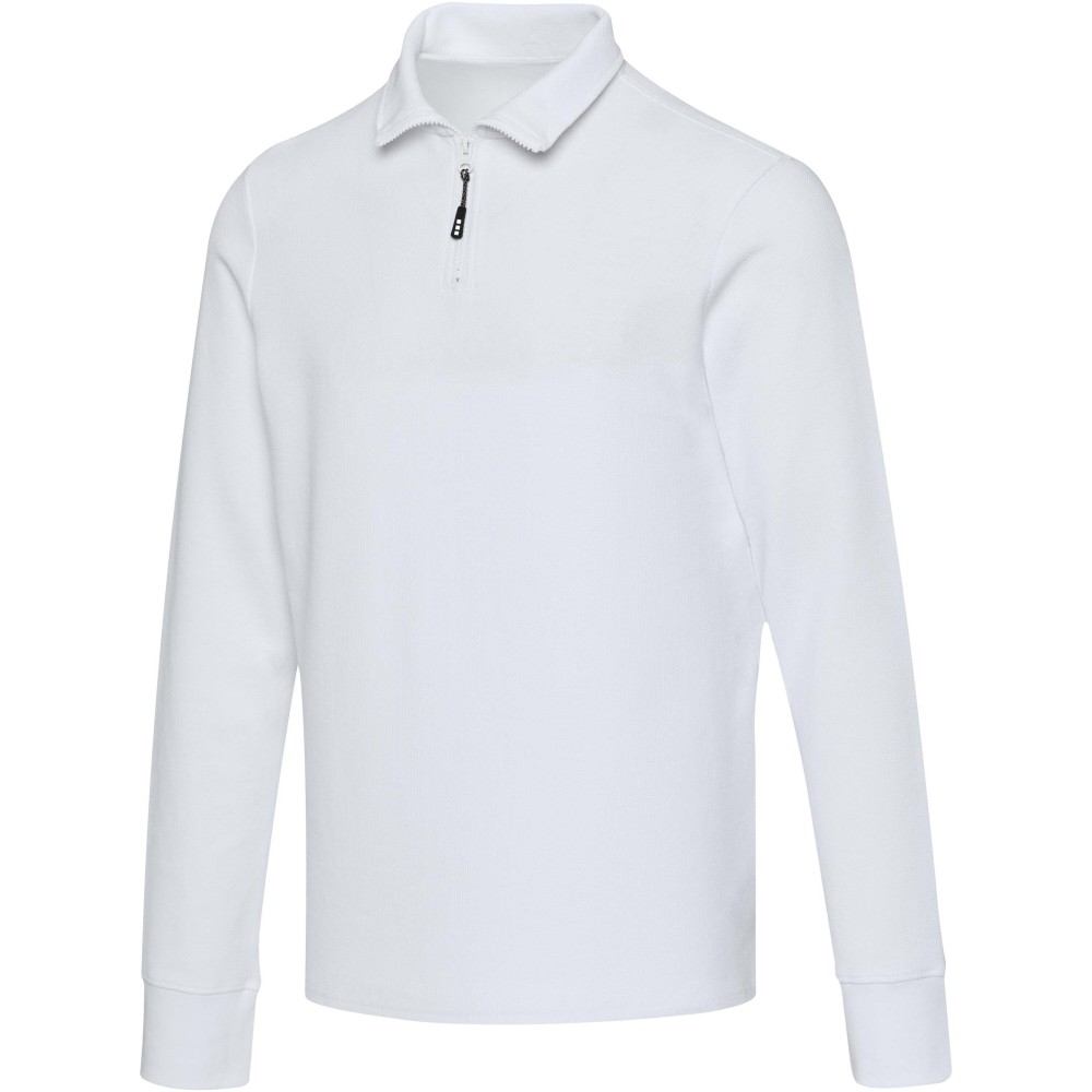 A Zeus uniszex hosszúujjú, félcipzáras felső egész évben kényelmes viseletet biztosít. Anyaga piqué kötésű, amely kellemes tapintású és tartós kialakítású. A kidolgozást finom pick stitch varrásrészletek egészítik ki, az azonos alapanyagból készült nyakszalag-erősítés pedig hozzájárul a hosszabb élettartamhoz. Az oldalsó sliccek, szintén saját anyagból készült betétekkel, nagyobb mozgásszabadságot tesznek lehetővé. A hőtranszferes márkajelzés cimkementes komfortot nyújt. A termék AWARE nyomonkövetesi technológiával van ellátva, amely egy digitális termékútlevelet tartalmaz, igy biztosítva az átláthatóságot és a fenntarthatósági jellemzők bemutatását. 100% pamut, 245 g/m2. Emblémázás: Hímzés