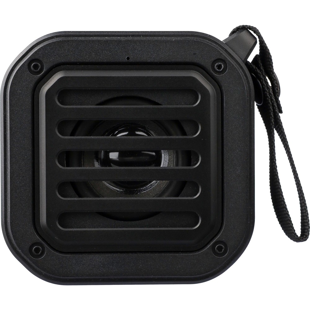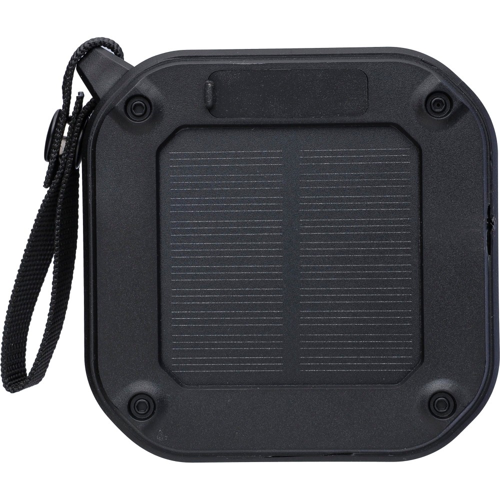 Kültéri hangszóró csuklópánttal és karabinerrel. IPX6 védelem. 3W teljesítmény, DC 5V bemenet, 400mAh beépített újratölthető akkumulátor, kb. 4 órás lejátszási idővel. Működési távolság: 15-20 méter, jel-zaj arány: 75 dB. Frekvenciatartomány: 100 Hz - 20 kHz. Tartalmaz egy 30 cm-es Type-C töltőkábelt, beépített LED zseblámpát (30 lumen) és napelem panelt a használati idő meghosszabbításához. Vezeték nélküli kapcsolattechnológia: 5.3. Egyenként barna kartondobozba csomagolva. Újrahasznosított ABS. Emblémázás: Tamponnyomás