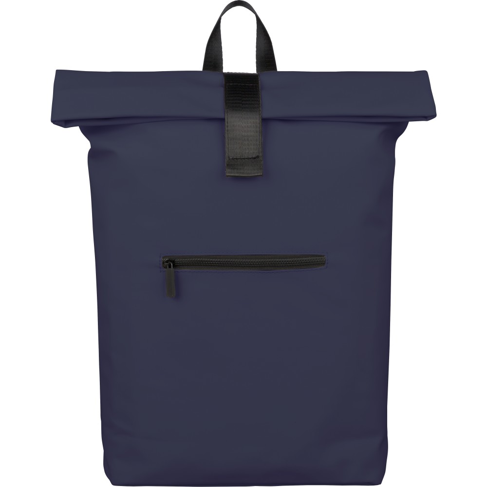Újrahasznosított PU anyagból készült hátizsák 19 literes űrtartalommal, rolltop záródással és tépőzáras rögzítéssel. Elülső cipzáras zsebbel, 16 hüvelykes laptoprekesszel, 210D újrahasznosított béléssel, állítható szellőző vállpántokkal és felső fogantyúval rendelkezik. A belső címkén újrahasznosított alapanyagra utaló jelölés található.