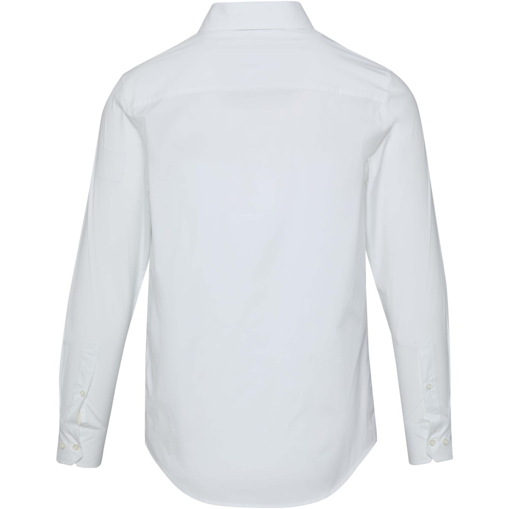 A Carnelian hosszúujjú férfi puplin ing modern kifinomultságot és fokozott kényelmet ötvöz. Kiváló minőségű, BCI-tanúsítvánnyal rendelkező pamutból készült, hozzáadott rugalmassággal, finom 30 denier kétrétegű sodrott szálszerkezettel, amely sima felületet, kivételes tartósságot és luxus érzetet biztosít. A könnyű puplin szövet friss, tiszta megjelenést kölcsönöz, míg a normál fazon mozgásszabadságot és egész napos kényelmet biztosít. Klasszikus, normál gallérral ellátott Carnelian ing sokoldalúan viselhető, mind üzleti, mind alkalmi viselethez. Puplin 97% BCI pamutból és 3% elasztánból, 133 g/m2. Emblémázás: Hímzés