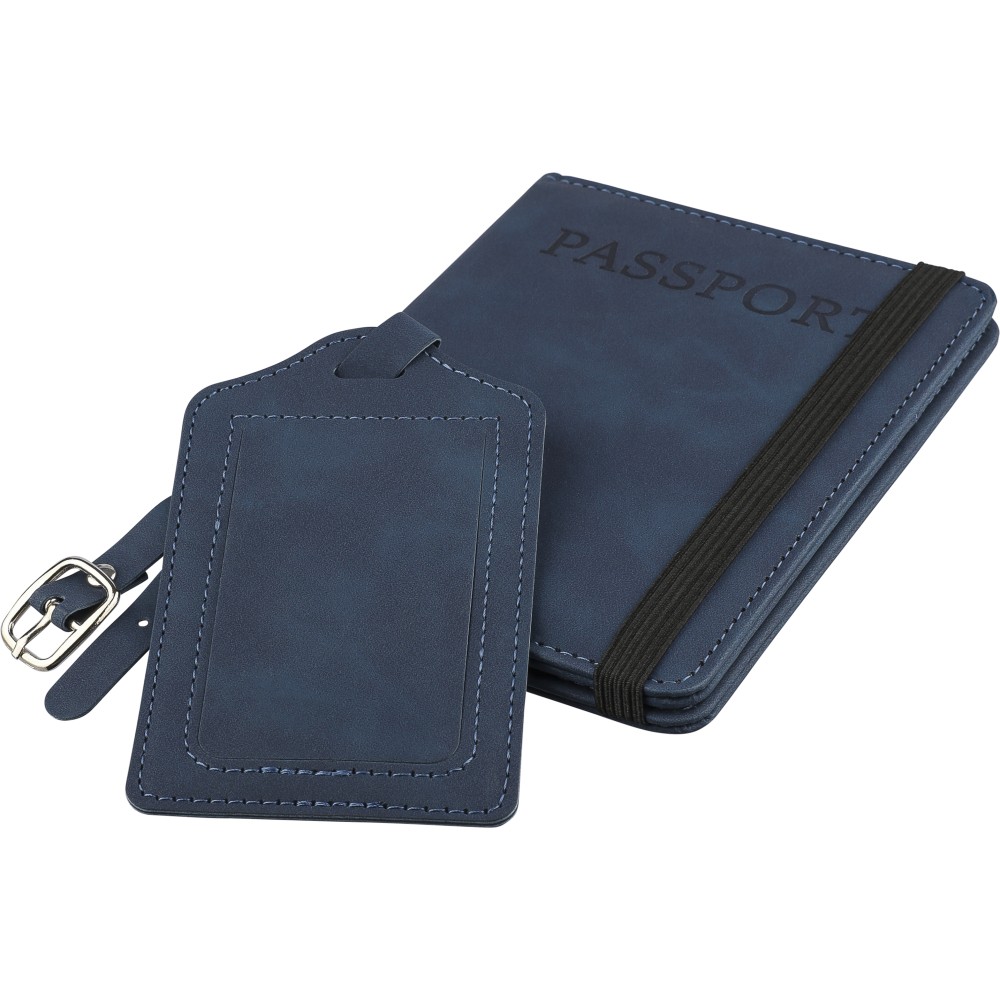Útlevéltartó és bőröndcímke, kék