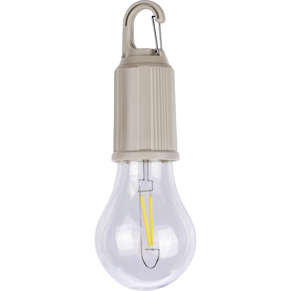 ABS anyagból készült izzó formájú lámpa (60 lumen) 400 mAh kapacitású, újratölthető akkumulátorral. USB-C csatlakozással tölthető. Fém klippel rendelkezik és három világítási móddal. IPX3 védettségi szint. Emblémázás: Tamponnyomás