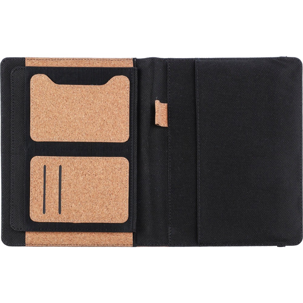 A5-ös parafa mappa belső zsebekkel, rugalmas zárópánttal, tolltartó hurokkal és kivehető A5-ös jegyzetfüzettel, amely 192 vonalas, újrahasznosított papírlapot tartalmaz (70 g/m2). Selyempapír csomagolásban. Emblémázás: Tamponnyomás