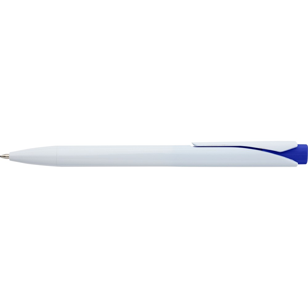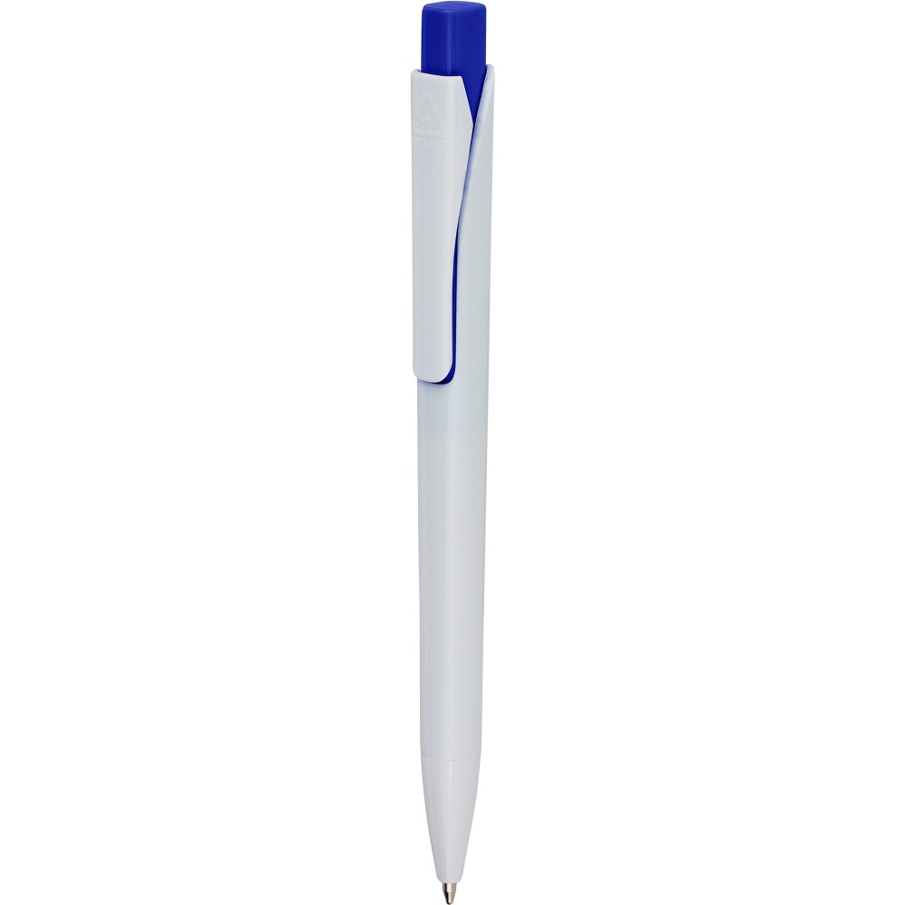 Golyóstoll tömör fehér tolltesttel és színes nyomógombbal. Újrahasznosított ABS-ből készült. Nyomógombos szerkezettel, klipsszel, valamint a nyomógomb tetején újrahasznosított ABS logóval rendelkezik. Kék színű, német Dokumental tollbetéttel, mely körülbelül 800 méter íráshosszt biztosít.