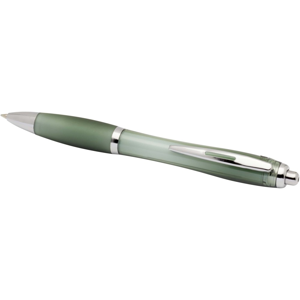 A Nash újrahasznosított műanyagból készült nyomógombos golyóstoll stílusos, ívelt kialakítású, áttetsző színes tolltesttel, ezüst díszítéssel és a tolltest színével megegyező, kényelmes írást biztosító puha fogórésszel rendelkezik. Az RCS tanúsítvánnyal rendelkező újrahasznosított ABS műanyagból készült termék segít csökkenteni a szűz alapanyagok felhasználását, miközben megőrzi tartósságát. A toll hátoldalán található rABS logó jelzi az újrahasznosított anyagösszetételt. Tinta színe: kék. Tollhegy mérete: 1.0 mm. Íráshossz: 1000 méter.