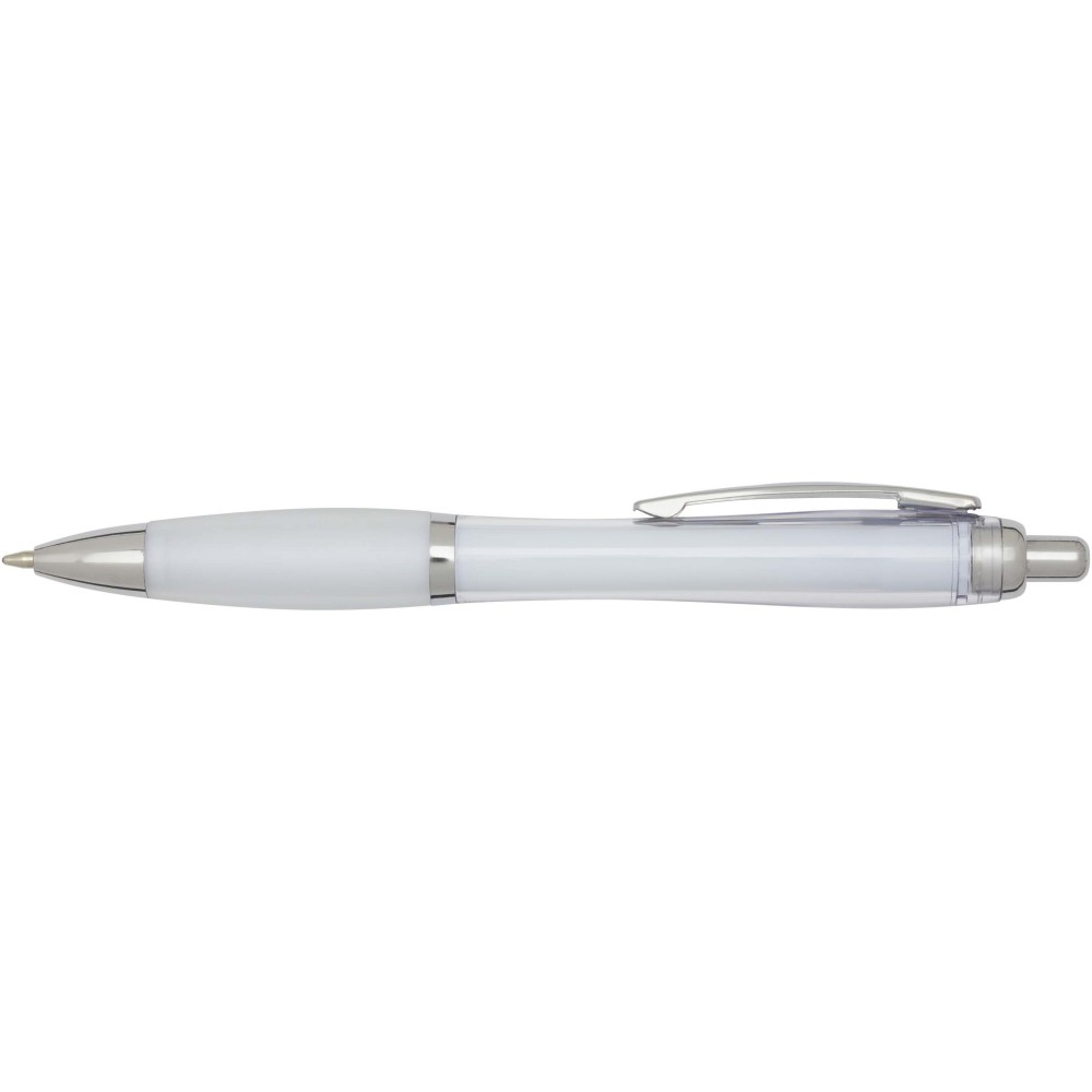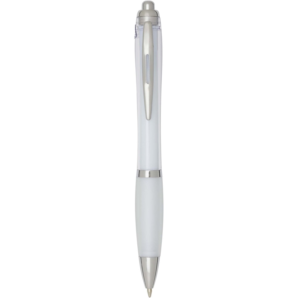 A Nash újrahasznosított műanyagból készült nyomógombos golyóstoll stílusos, ívelt kialakítású, áttetsző színes tolltesttel, ezüst díszítéssel és a tolltest színével megegyező, kényelmes írást biztosító puha fogórésszel rendelkezik. Az RCS tanúsítvánnyal rendelkező újrahasznosított ABS műanyagból készült termék segít csökkenteni a szűz alapanyagok felhasználását, miközben megőrzi tartósságát. A toll hátoldalán található rABS logó jelzi az újrahasznosított anyagösszetételt. Tinta színe: fekete. Tollhegy mérete: 1.0 mm. Íráshossz: 1000 méter.