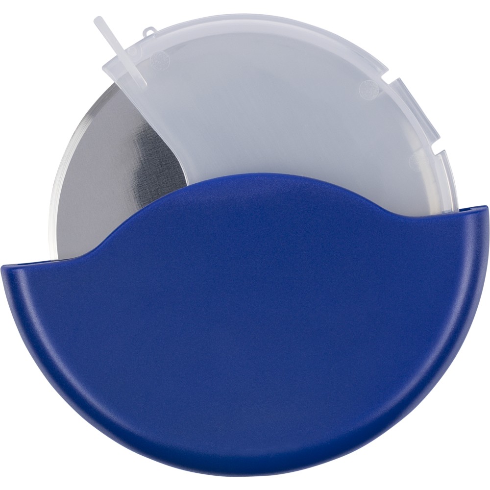 ABS és PP anyagból készült pizzavágó 430-as rozsdamentes acél pengével, kivehető védőborítással, amely könnyen felpattintható a tisztítás és a penge elérése érdekében. Újrahasznosított polietilén tasakba csomagolva.