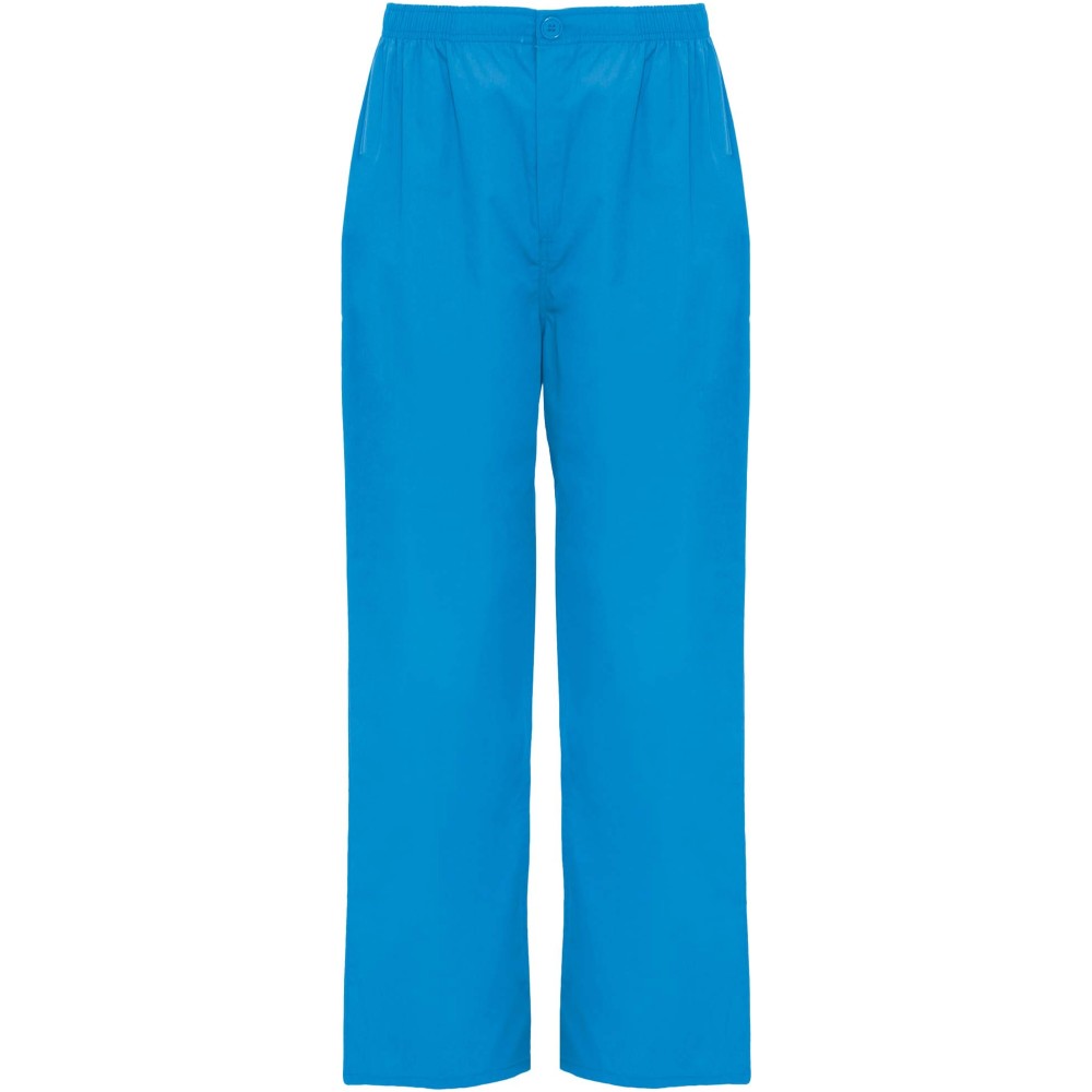 Unisex munkavédelmi nadrág, amely egyenes szabású kialakításával és rugalmas derékrészével kényelmes viseletet biztosít. A nadrág cipzárral és gombbal záródik, valamint praktikus hátsó zsebbel rendelkezik.