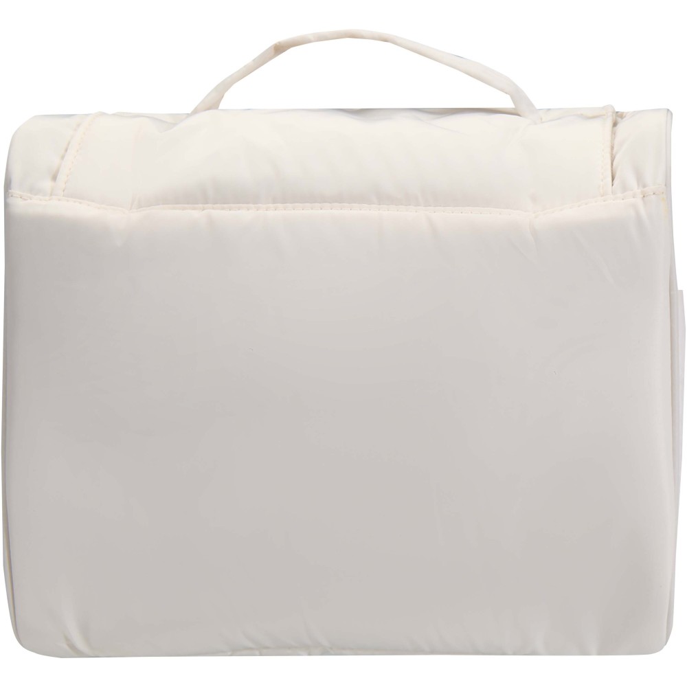 A Puffer felakasztható piperetáska GRS tanúsítvánnyal rendelkező újrahasznosított alapanyagokból készül, egyedi kialakítással a mindennapi kényelem érdekében. A 8 literes neszesszer tágas fő rekesszel rendelkezik, hat belső zsebbel, két külső oldalzsebbel, valamint egy praktikus akasztóval, amely ajtóra vagy törölközőtartóra rögzíthető. A párnázott fogantyú megkönnyíti a hordozást, míg a jellegzetes puffer stílusú párnázás egyszerre biztosít védelmet és esztétikus megjelenést. Könnyű és vízlepergető kialakításának köszönhetően utazás közben is rendezetten és biztonságosan tartja a legfontosabb tisztálkodási kellékeket. Emblémázás: Szitanyomás
