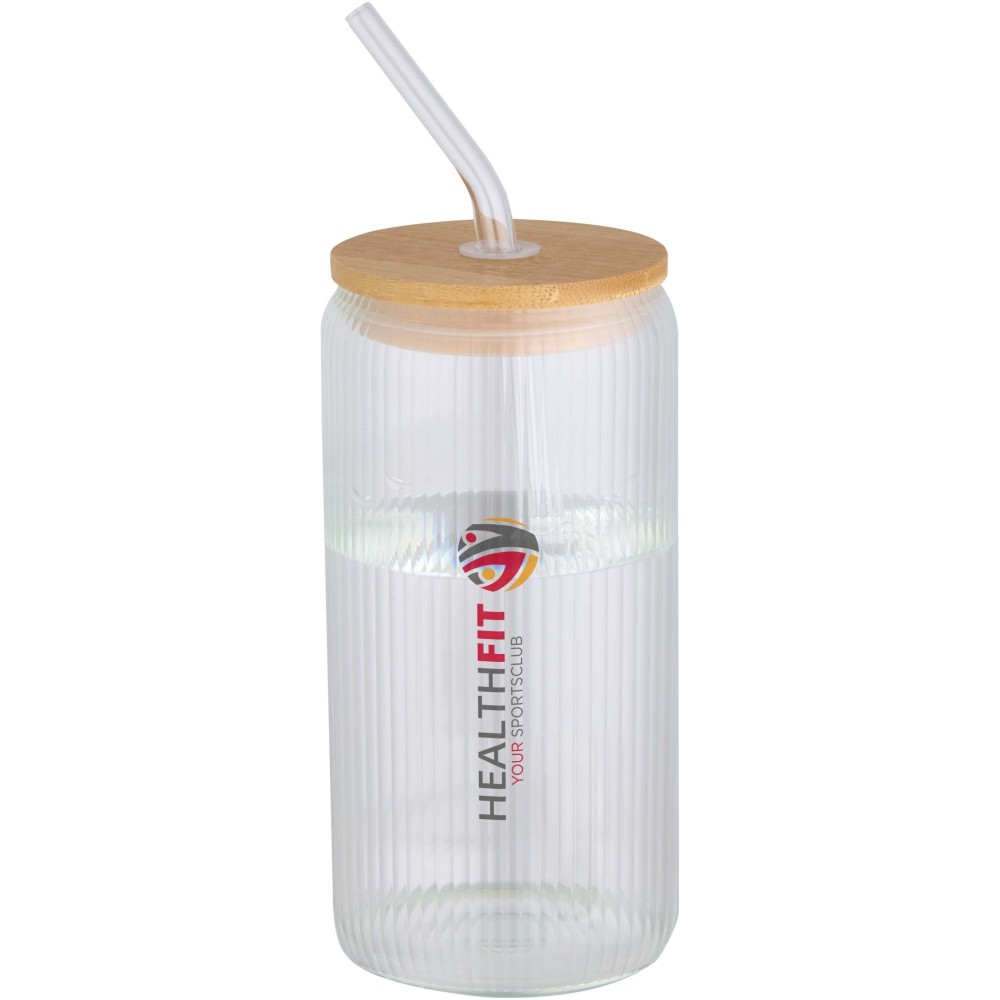 Boroszilikát üvegből készült pohár szívószállal és bambusz fedéllel. Az edény különlegessége a belső bordázott kialakítás, miközben a külső felülete sima, így kiválóan alkalmas emblémázásra. A gyártáshoz felhasznált bambusz fenntartható forrásból származik, szem előtt tartva a környezeti és társadalmi felelősségvállalást. A terméket újrahasznosított kartonból készült ajándékdobozban szállítjuk. Űrtartalom: 650 ml. Emblémázás: Bögredekor