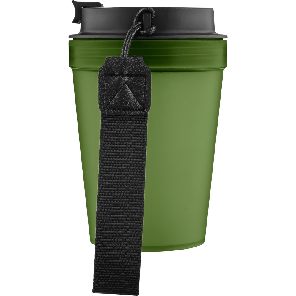 Átlátszó, szimplafalú ivópohár 350 ml-es űrtartalommal, vastagfalú kialakítással. Csavaros fedéllel és poliészter csuklópánttal rendelkezik a könnyű hordozhatóság érdekében. Tartós, ütésálló, megbízható termék. Meleg italokhoz is alkalmas, de kérjük, vegye figyelembe, hogy az egyfalú szerkezet miatt hőátadás előfordulhat.