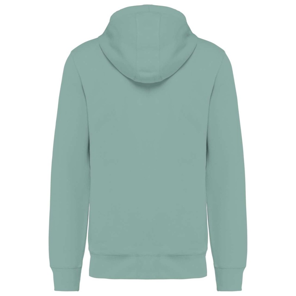 80% organikus pamut / 20% újrahasznosított poliészter. Oxford szürke 75% bio pamut / 25% újrahasznosított poliészter. Francia frottír LST (Low Shrinkage Terry). Szövet: enzimes mosás. Karcsúsított szabás. 2 elülső zseb. Bordázott kézelő, bordázott szegély és bélelt kapucni. Fém véggel ellátott húzózsinór. Félhold alakú kivitel a nyakkivágásnál, hogy megkönnyítse a díszítéshez való hozzáférést belülről. Twill szalagos nyak és V alakú betét a nyakkivágásnál. Nincs márkacímke a nyakon, csak méretcímke a dekorációhoz való könnyebb hozzáférés érdekében. OEKO-TEX N CQ1007/7 STANDARD 100 tanúsítvánnyal rendelkezik. IFTH. Emblémázás: Hímzés, Szitanyomás