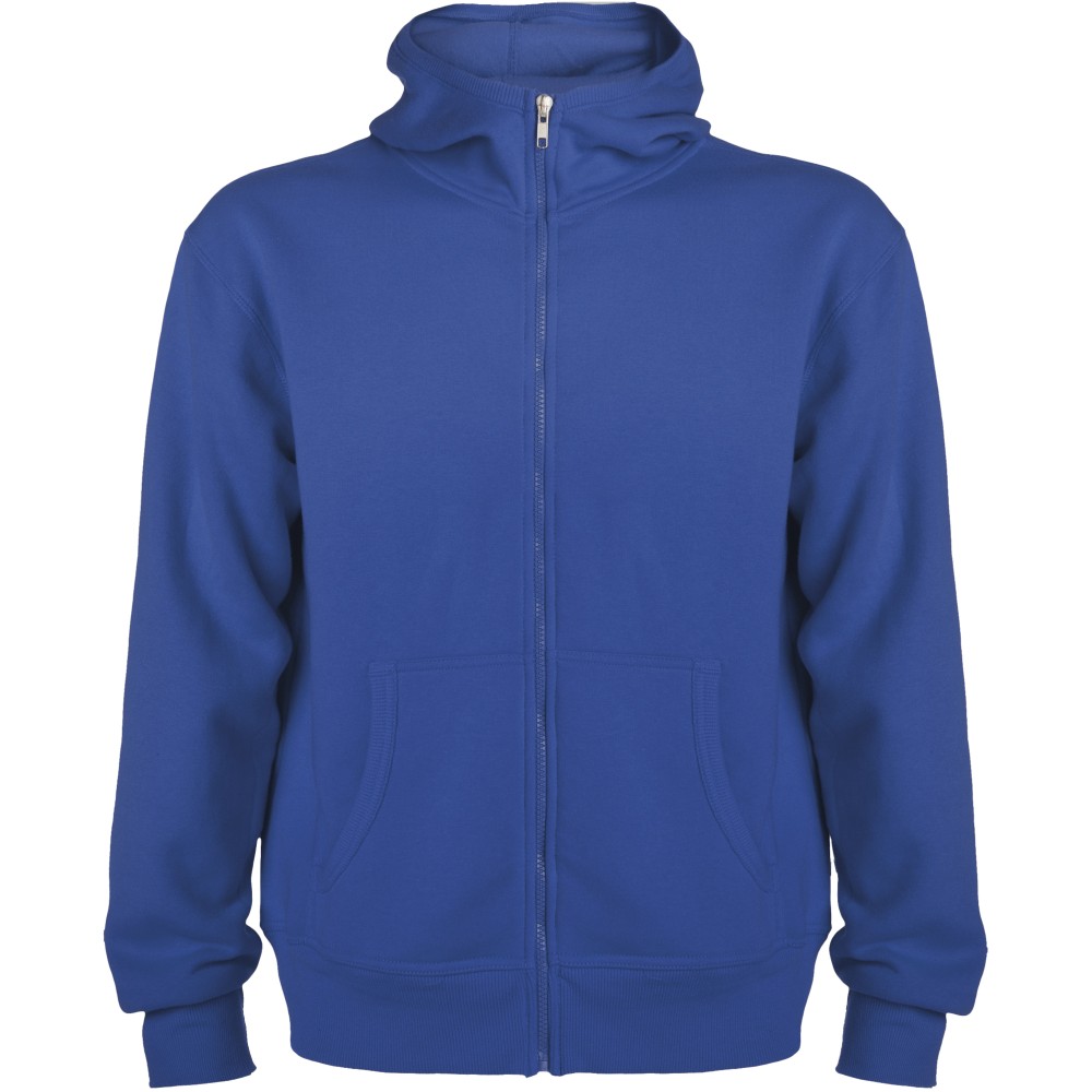 Magasnyakú, kapucnis pulóver teljes cipzárral. Bordázott részletek a kapucni és a zsebek szélén. Kenguru stílusú zseb. 2x2-es bordás kézelő és nyakpasszé. Gyerekméretekben is kapható. 50% pamut és 50% poliészter, 280 g/m2. Emblémázás: Hímzés, Szitanyomás