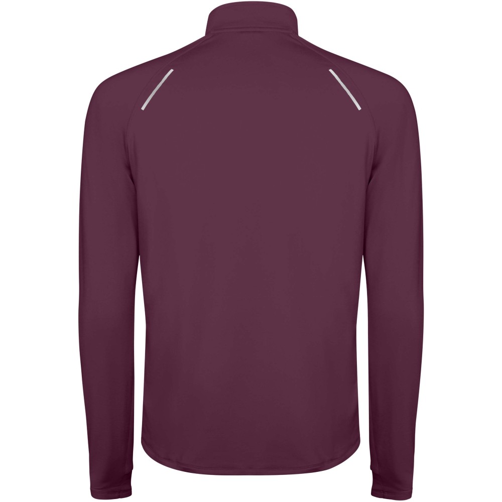 Férfi hosszúujjú technikai raglán pulóver. Gallér fordított félcipzárral, fényvisszaverő részletekkel. Erősített varrások. Mandzsetta hüvelykujj nyílással. Fényvisszaverő részletek a háton. A hátul enyhén hosszabb, mint elől. Meleg, bolyhos belső anyag. Emblémázás: Hímzés, Szitanyomás