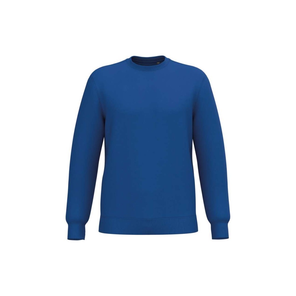 280 g/m2, 50% gyűrött pamut/50% újrahasznosított poliészter. Csiszolt polár anyag, egyenes szabás, környakas fazon. Vágott és varrott, 1x1 bordás, csőszerű összeállítás a nyakvonal, a mandzsetták és az alsó szegély jobb kiviteléért. Tónusban megegyező jersey szalag a nyakvonal belsejében. Nincs márkajelzés a nyakvonalon, csak méretcímke a könnyű dekorálás érdekében. Emblémázás: Hímzés, Szitanyomás