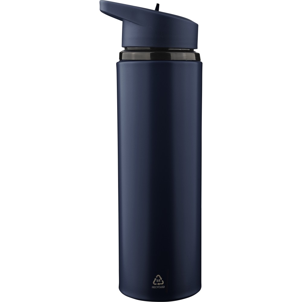 Újrahasznosított rozsdamentes acélból készült, egyfalú ivópalack rozsdamentes acél 304 anyagból, PP csavaros kupakkal, hordozófüllel, felhajtható ivószárral és belső szívószállal. Kizárólag hideg italokhoz használható, űrtartalma 500 ml. A palacktesten gravírozott recycled (újrahasznosított) alapanyagra utaló logó található. Darabonként barna kartondobozba csomagolva. Emblémázás: Bögredekor