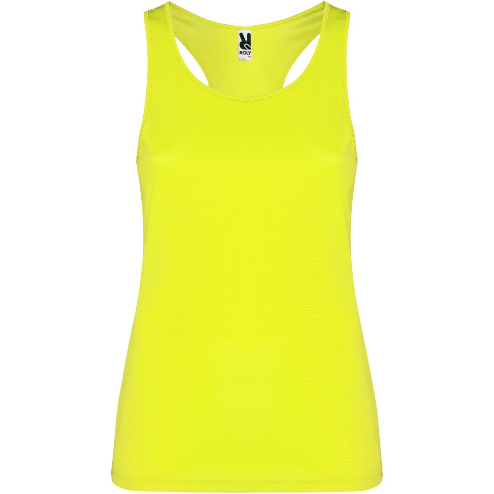 Technikai, légáteresztő, könnyen mosható és gyorsan száradó anyag. Bordázott karkivágások és nyakrész. Racerback kialakítás és oldalvarrások. Eltávolítható címke. 100% Polyester, 140 g/m2. Emblémázás: Szitanyomás