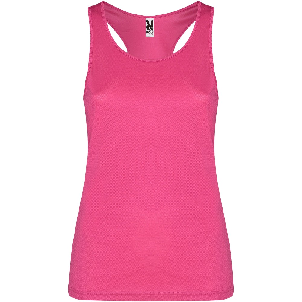 Technikai, légáteresztő, könnyen mosható és gyorsan száradó anyag. Bordázott karkivágások és nyakrész. Racerback kialakítás és oldalvarrások. Eltávolítható címke. 100% Polyester, 140 g/m2. Emblémázás: Szitanyomás