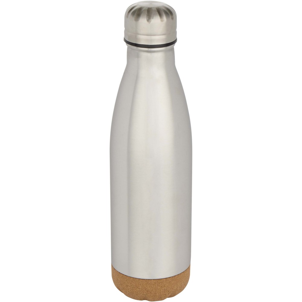Vákuumszigetelt rozsdamentes acél kulacs parafa részletekkel az alján. Dupla falú szigetelése több órán át melegen vagy hidegen tartja az italokat. Újrahasznosított kartondobozos díszcsomagolásban kerül átadásra. Űrtartalom: 500 ml. Emblémázás: Gravírozás, Tamponnyomás