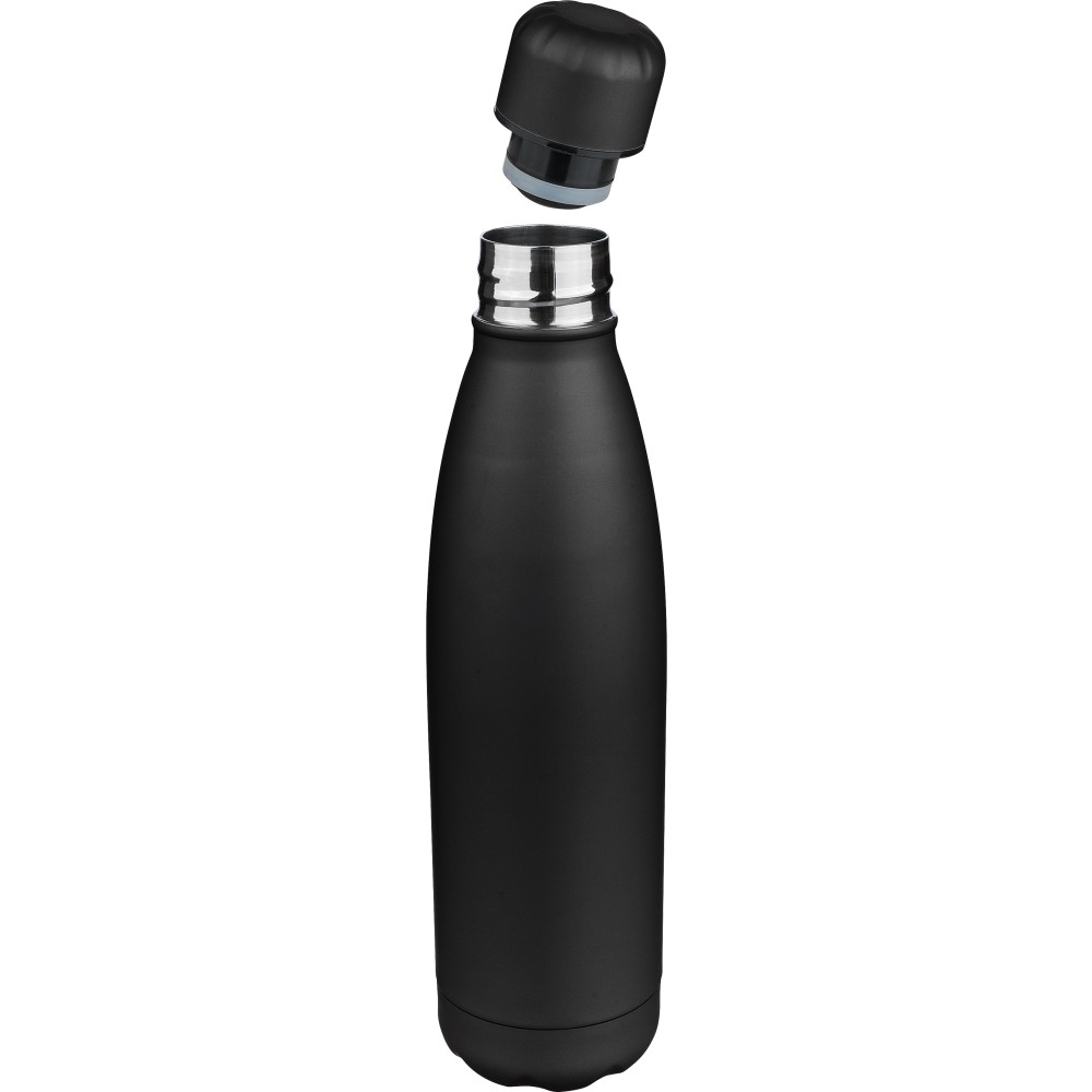 Újrahaszanosított, duplafalú ivópalack, 500 ml, fekete