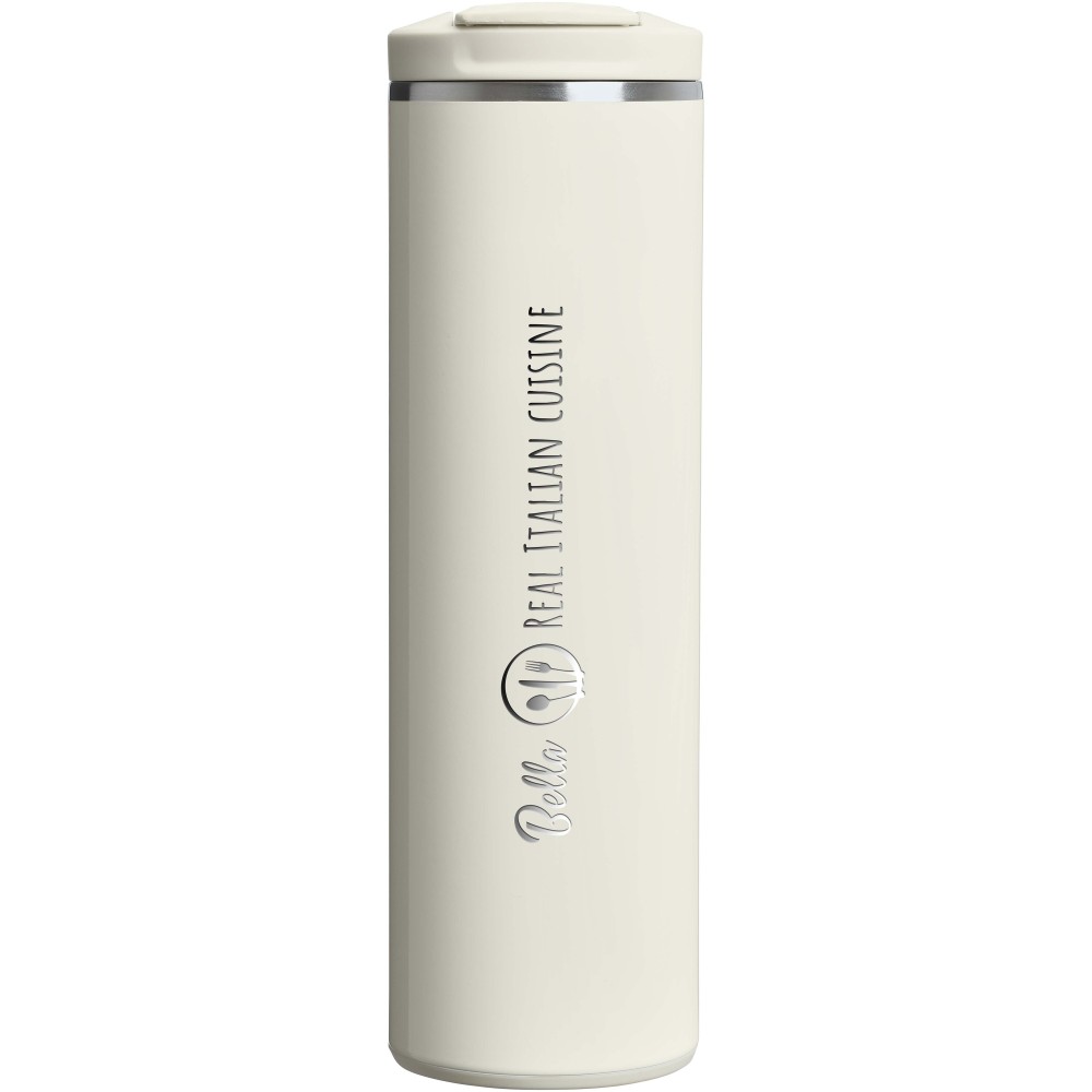 Ez a 470 ml-es duplafalú, vákuumszigetelt pohár újrahasznosított rozsdamentes acélból készül, prémium technológiájának köszönhetően pedig 33%-kal könnyebb a hagyományos rozsdamentes acél modelleknél. A pihekönnyű, préselt acél szigetelés az italokat 4 órán át melegen, 6 órán át pedig hidegen tartja. A termék szivárgásmentes, a tetőnyitónál és a talpnál található, színben illeszkedő szilikon betétek pedig halkabb nyitást, zárást és letételt biztosítanak. Mosogatógépben tisztítható, mérete pedig a legtöbb autós pohártartóval kompatibilis.