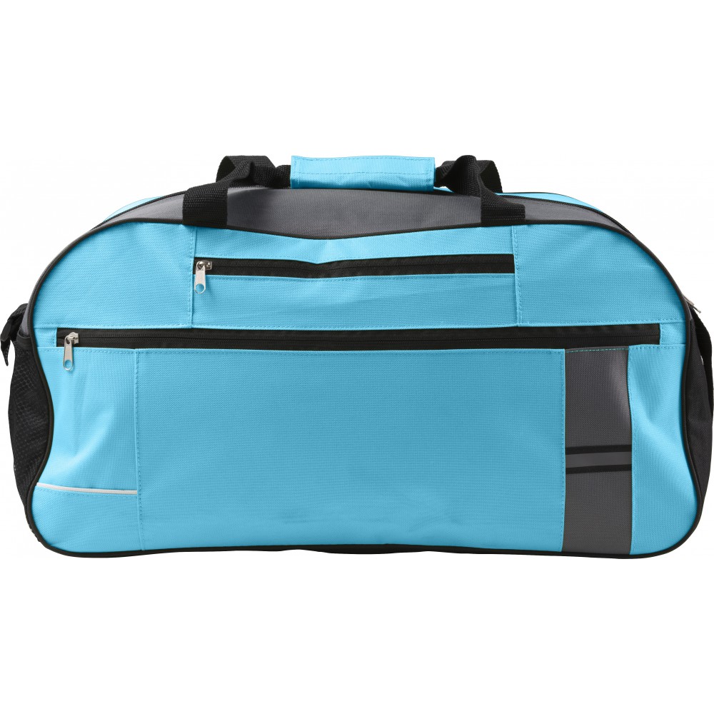 Utazótáska több cipzáros zsebbel, fényvisszaverő csíkkal, állítható vállpánttal. 600D poliészter. Emblémázás: Hímzés, Szitanyomás