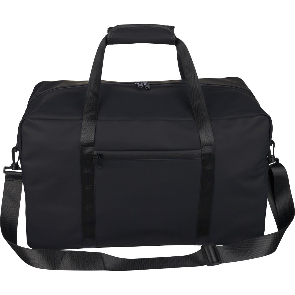 Újrahasznosított PU anyagból készült sporttáska 35 literes űrtartalommal, 210D újrahasznosított poliészter béléssel. 108 cm hosszúságú és 2,5 cm szélességű fogantyúval rendelkezik tépőzáras rögzítéssel, valamint 130 cm hosszúságú és 3,9 cm szélességű állítható vállpánttal. Elülső cipzáras zsebbel és nagy fő rekesszel készül. A belső címkén újrahasznosított alapanyagra utaló logó található. Emblémázás: Szitanyomás