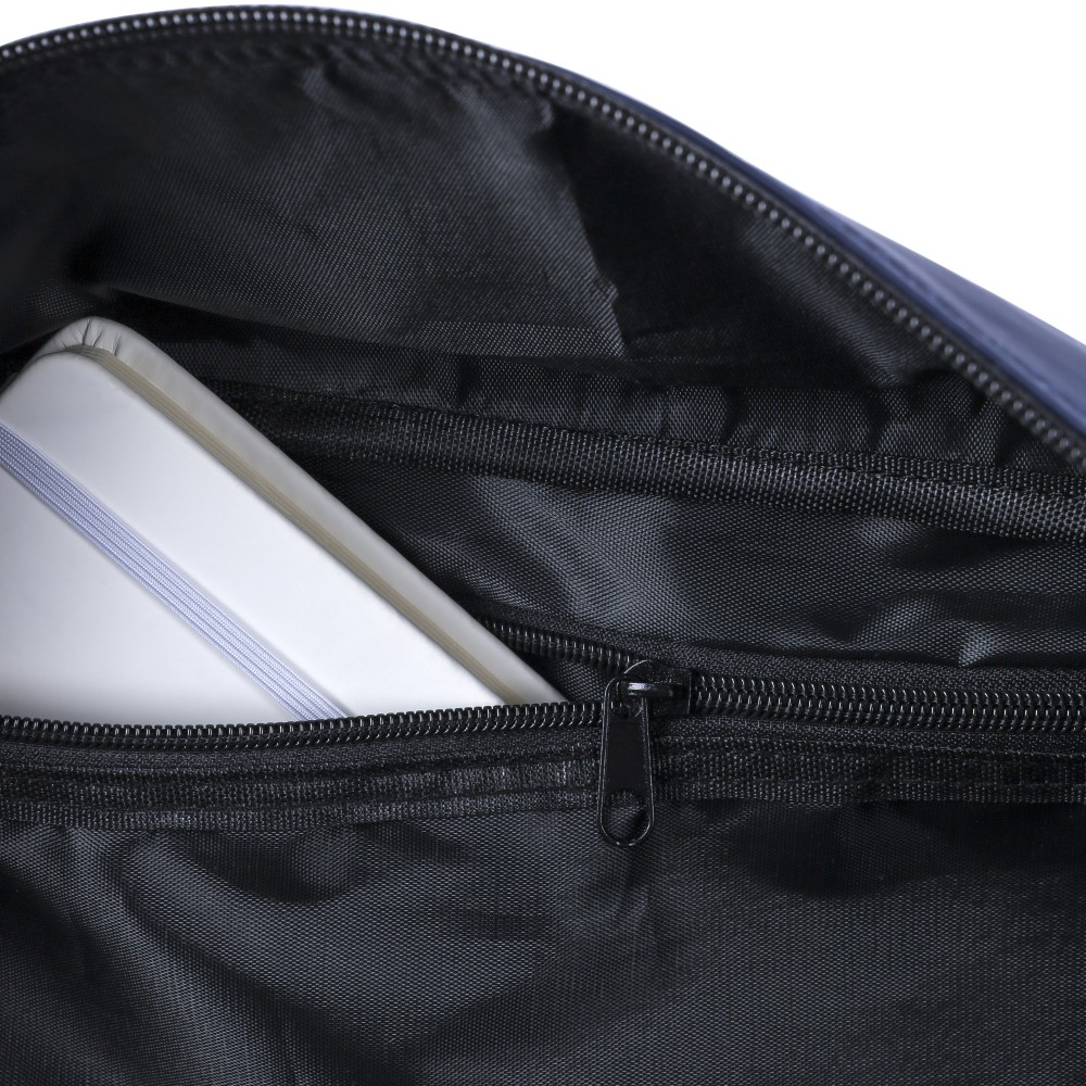 Újrahasznosított PU anyagból készült sporttáska 35 literes űrtartalommal, 210D újrahasznosított poliészter béléssel. 108 cm hosszúságú és 2,5 cm szélességű fogantyúval rendelkezik tépőzáras rögzítéssel, valamint 130 cm hosszúságú és 3,9 cm szélességű állítható vállpánttal. Elülső cipzáras zsebbel és nagy fő rekesszel készül. A belső címkén újrahasznosított alapanyagra utaló logó található. Emblémázás: Szitanyomás