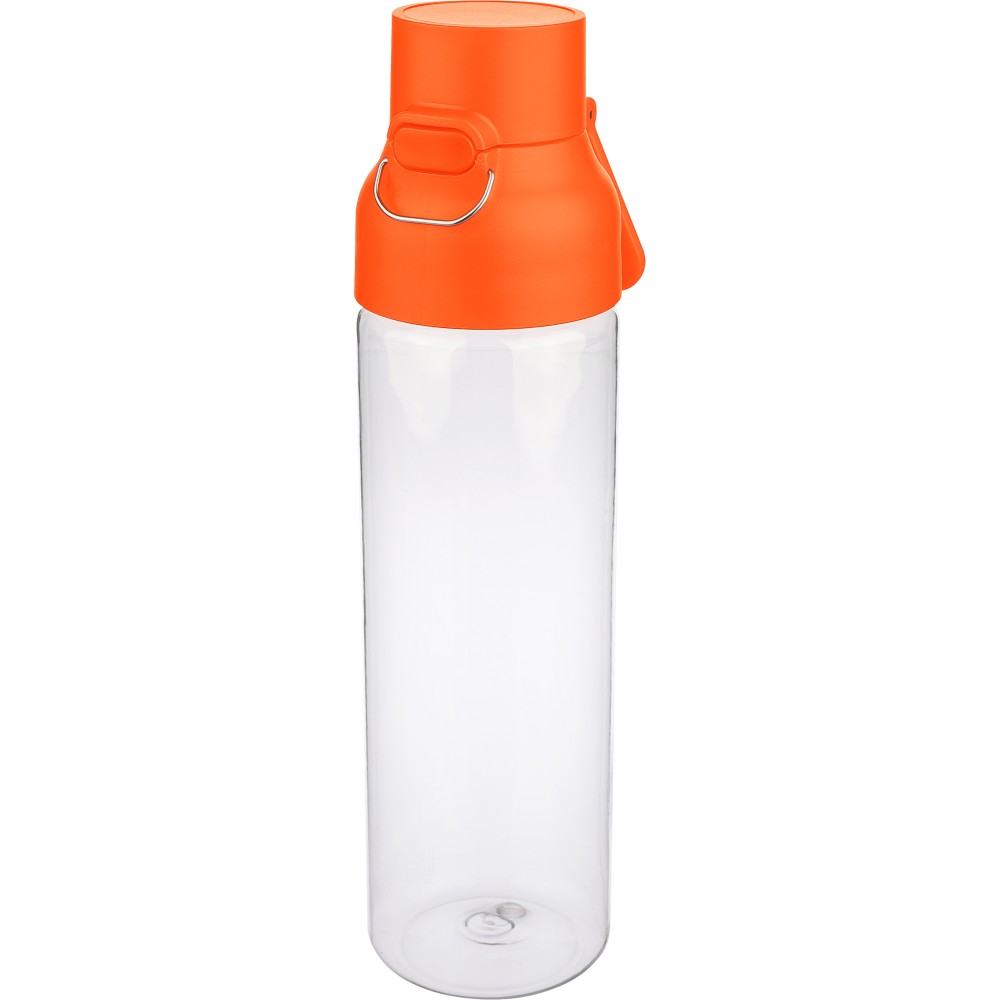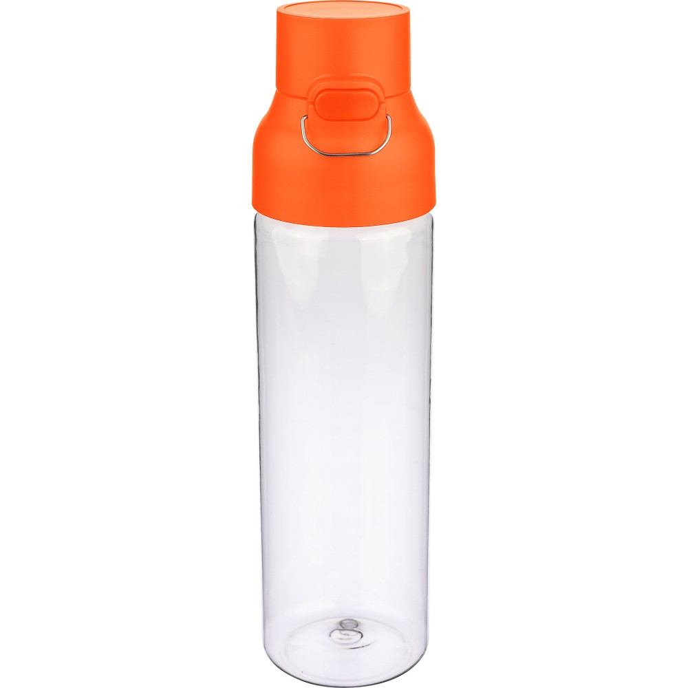 Tritán vizespalack 750 ml-es űrtartalommal, átlátszó palacktesttel és színes kupakkal. Tartós és könnyű anyagokból (PP) készült, amelyek ellenállnak a nedvességnek, a vegyszereknek és a mindennapi igénybevételnek. Mindennapi használatra tervezve; biztonságos nyomógombos zárral és felső hordozófogantyúval rendelkezik. Alkalmas munkához, iskolához vagy szabadtéri tevékenységekhez.