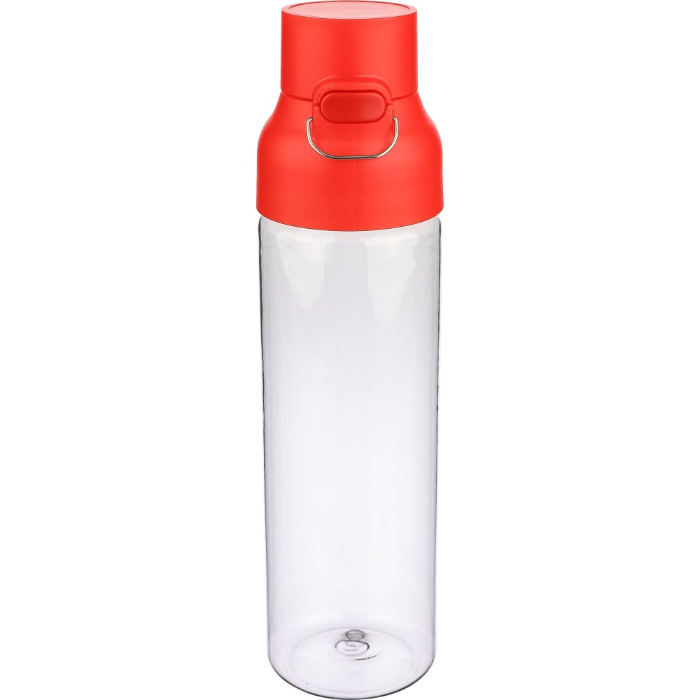Tritán vizespalack 750 ml-es űrtartalommal, átlátszó palacktesttel és színes kupakkal. Tartós és könnyű anyagokból (PP) készült, amelyek ellenállnak a nedvességnek, a vegyszereknek és a mindennapi igénybevételnek. Mindennapi használatra tervezve; biztonságos nyomógombos zárral és felső hordozófogantyúval rendelkezik. Alkalmas munkához, iskolához vagy szabadtéri tevékenységekhez.