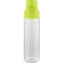 Tritán vizespalack 750 ml-es űrtartalommal, átlátszó palacktesttel és színes kupakkal. Tartós és könnyű anyagokból (PP) készült, amelyek ellenállnak a nedvességnek, a vegyszereknek és a mindennapi igénybevételnek. Mindennapi használatra tervezve; biztonságos nyomógombos zárral és felső hordozófogantyúval rendelkezik. Alkalmas munkához, iskolához vagy szabadtéri tevékenységekhez.