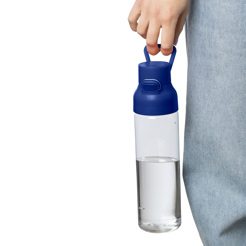 Tritán vizespalack 750 ml-es űrtartalommal, átlátszó palacktesttel és színes kupakkal. Tartós és könnyű anyagokból (PP) készült, amelyek ellenállnak a nedvességnek, a vegyszereknek és a mindennapi igénybevételnek. Mindennapi használatra tervezve; biztonságos nyomógombos zárral és felső hordozófogantyúval rendelkezik. Alkalmas munkához, iskolához vagy szabadtéri tevékenységekhez.
